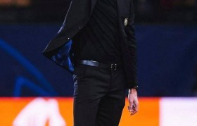 斯帕莱蒂站在场边,双手插在大衣口袋里,脸...